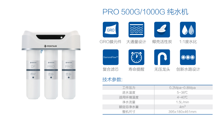 简介:GRO膜元件,1:1废水比,椰壳活性炭,复合滤芯,维护便捷,创新的水道设计